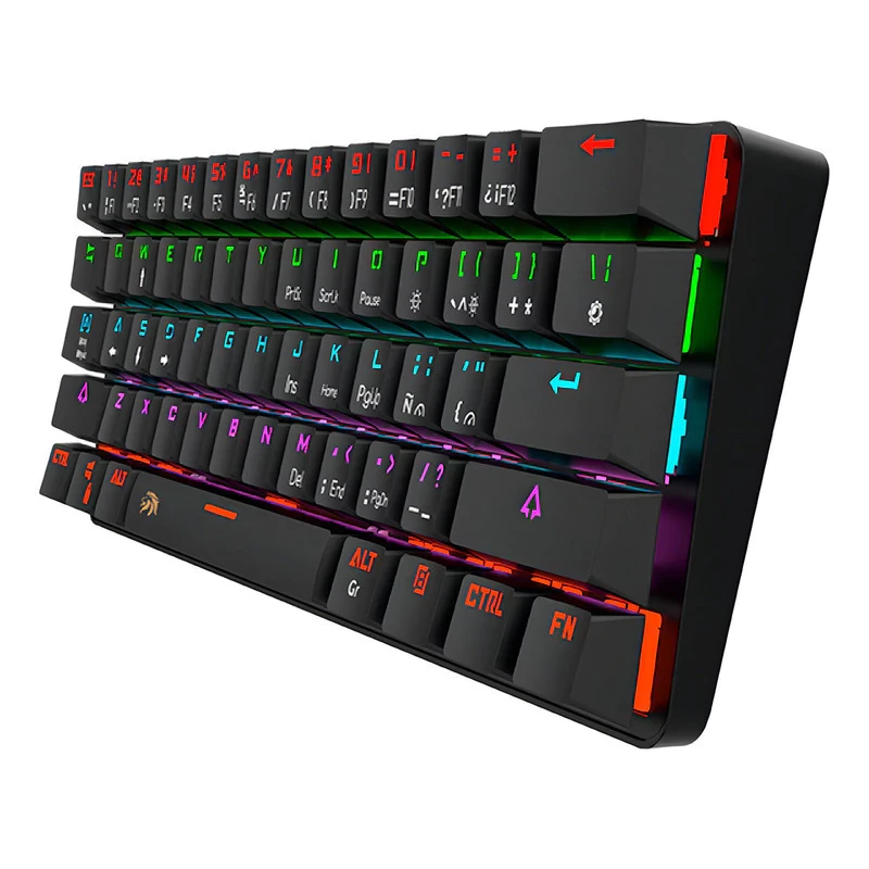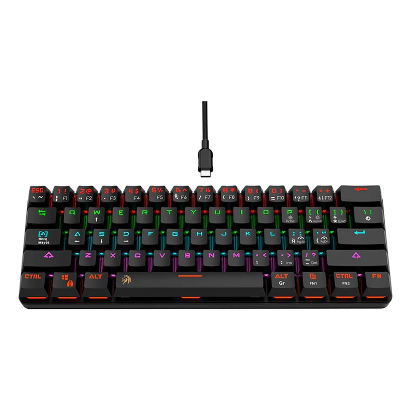 Teclado mecánico Gamer Netmak NM-DOMINATE formato 60%. Switches Blue táctiles, iluminación RGB y cable extraíble. Máximo espacio en tu Setup.